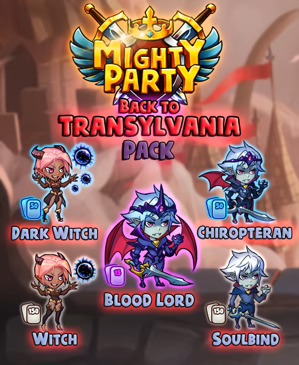 Are you ready for thrilling journey? The Back to Transylvania Pack is a great choice for the true adventurer to get a quick ang great start in Mighty Party!