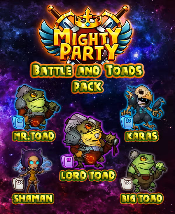 Are you ready for thrilling journey? Battle and Toads Pack is a great choice for the true adventurer to get a quick start in Mighty Party!