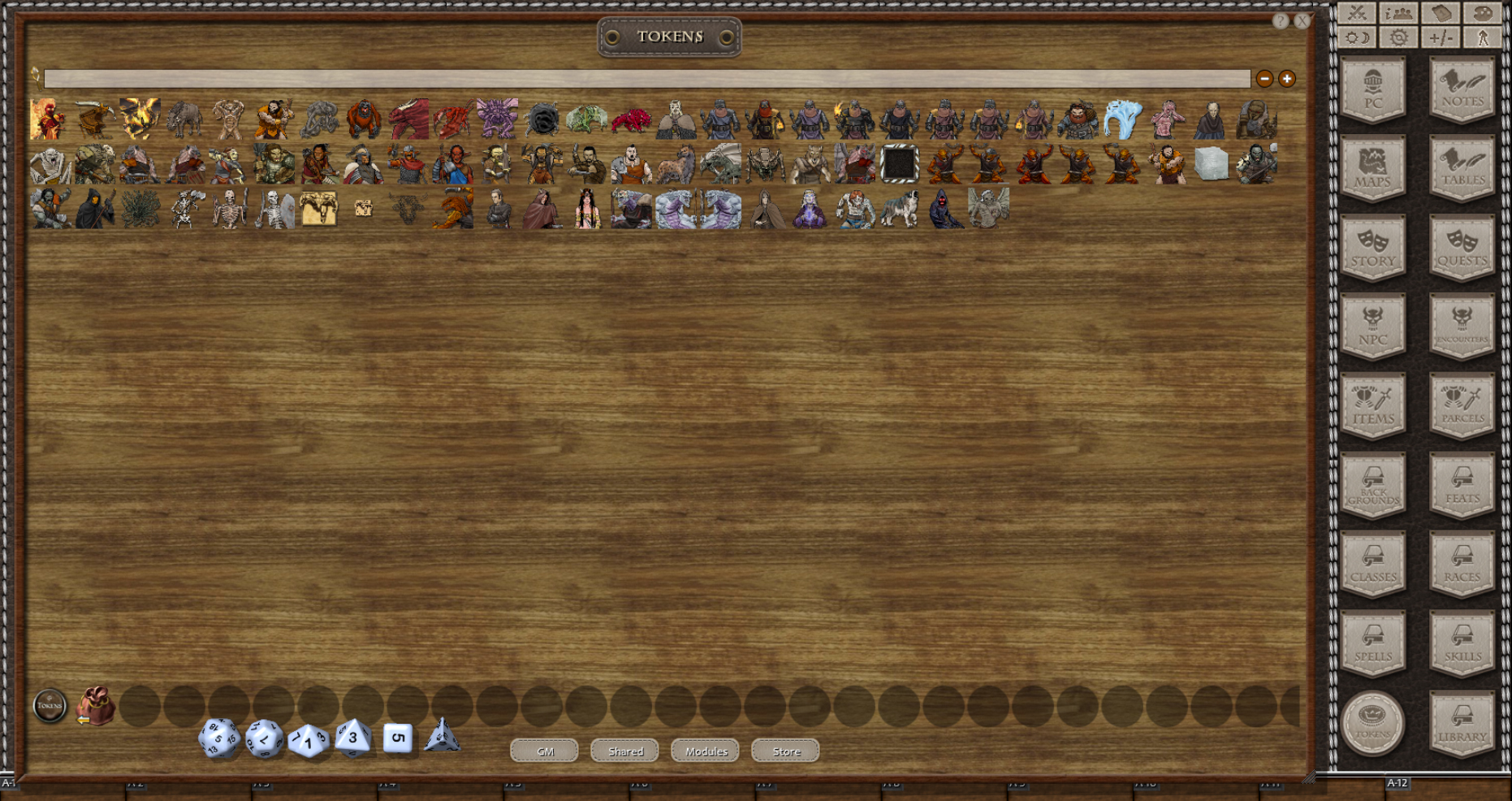 Ground II virtual tabletop. Upon activating the module, the tokens will appear in