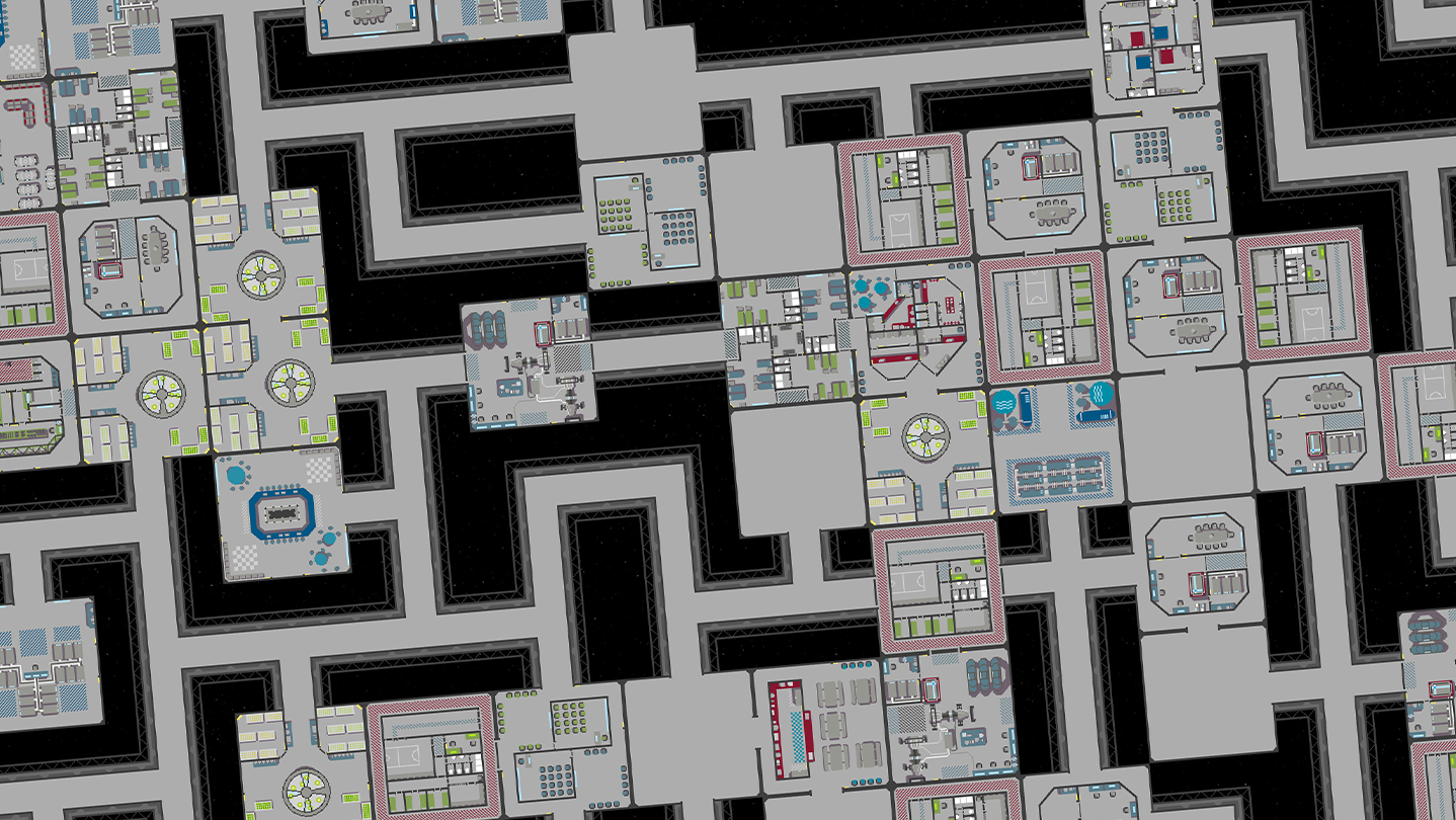 • Drag and drop rooms and corridors to create your station