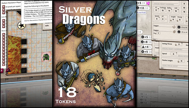 Add some flavour to your Encounters, NPCs or to be used as Characters with these 18 Silver Dragon tokens. These Tokens include a Silver Dragon, a variety armouSilver Dragon humanoids covering all the core fantasy armours, and even some dragon eggs.