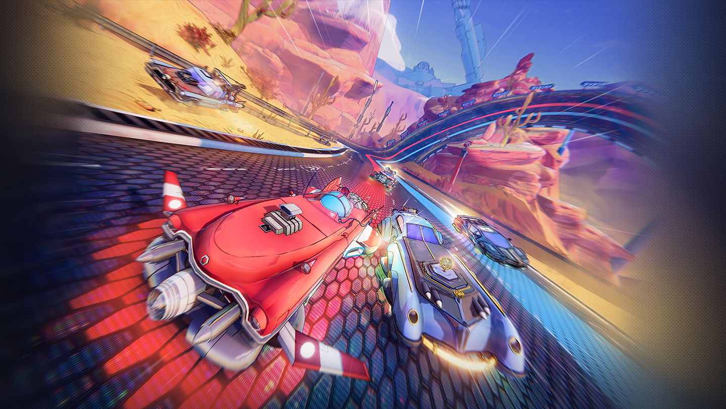 “A racer designed for teams up to three-versus-three, set across a wonderfully vibrant world of mountain tops, lush forests, and arid desert valleys.”