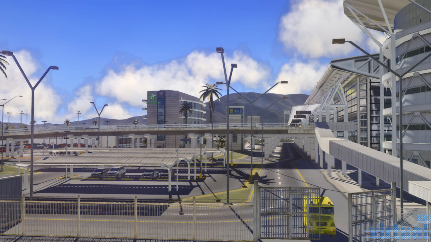 In general, the add-on impress, beside the amusement park, with many new animations like ground services, walking people, jet ways, military helicopters and many more, which give the airport an extremely vivid touch. Especially at night you will find a very special atmosphere that changes the approach at Santiago International Airport to an unique experience.