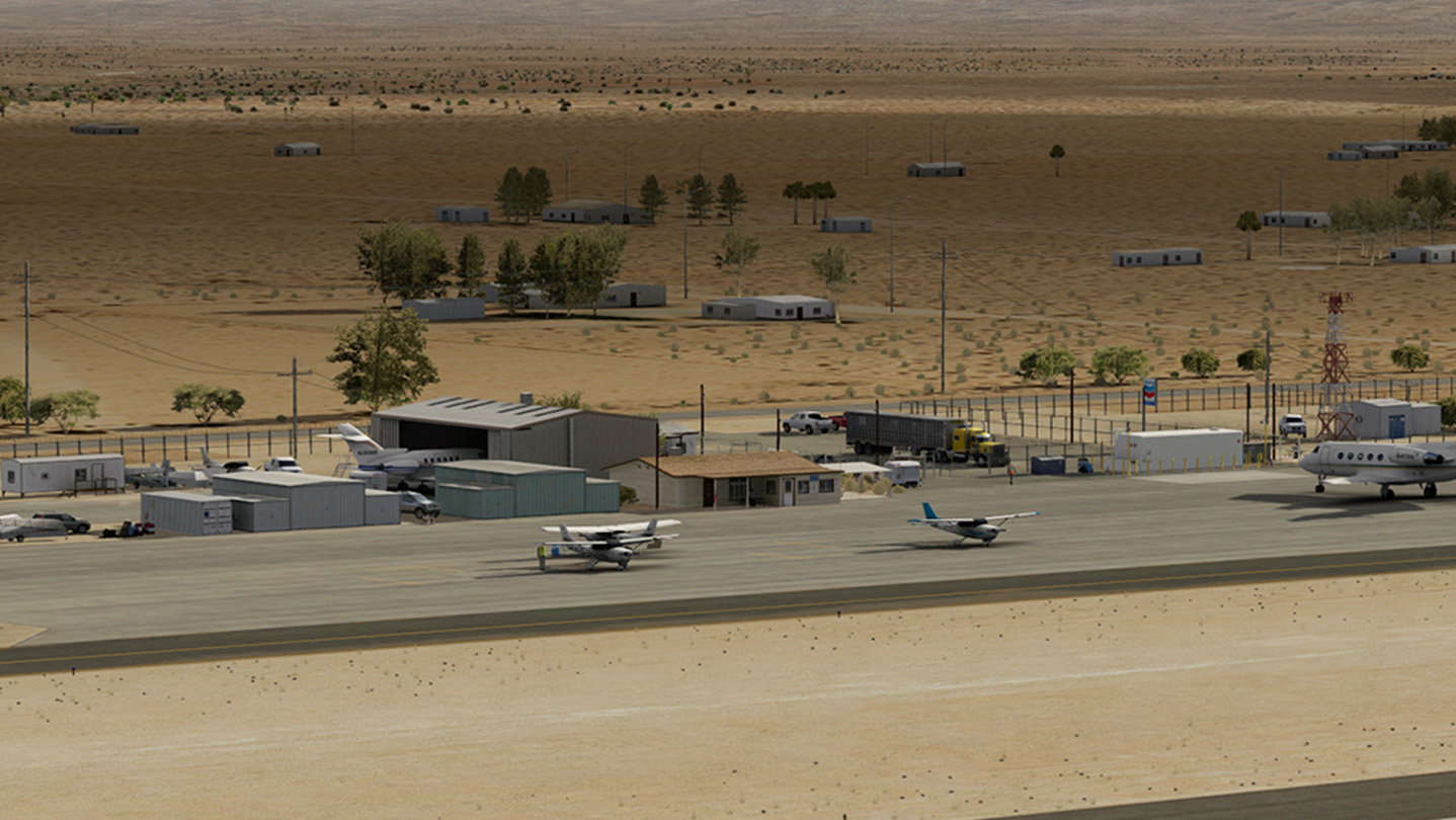 • Highly detailed rendition of Twentynine Palms Airport (KTNP), California