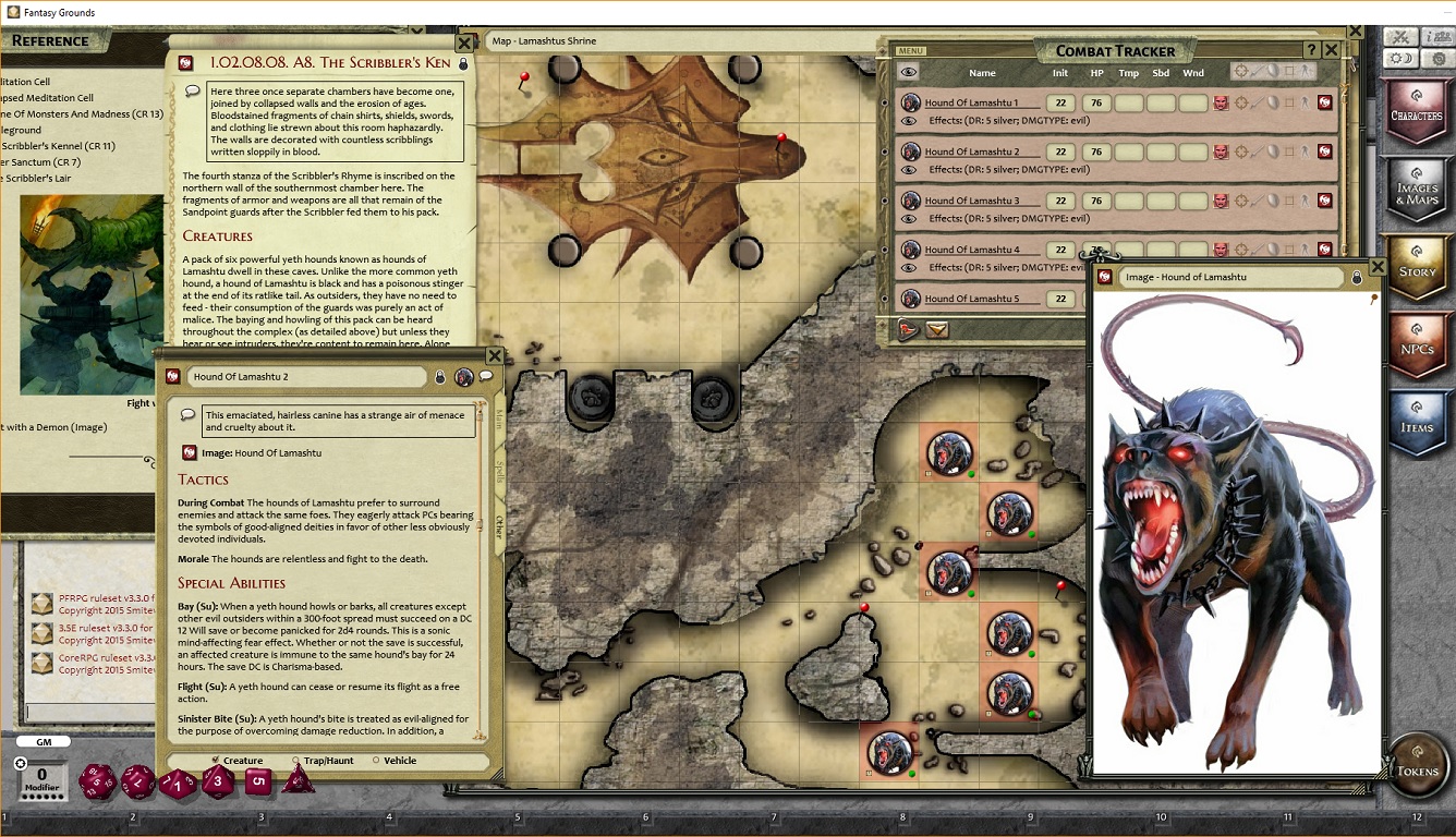 Requires: The free Fantasy Grounds virtual tabletop (VTT) software and the included Pathfinder RPG and D&D 3.5/ OGL ruleset.