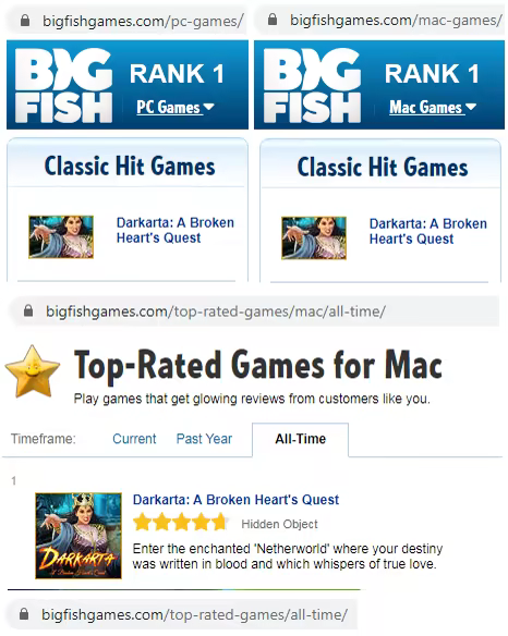 ⭐ The 'GAME OF MOTHERHOOD & TRUE LOVE' was CLASSIC HIT RANK 1 in both PC & Mac markets (Bigfishgames)