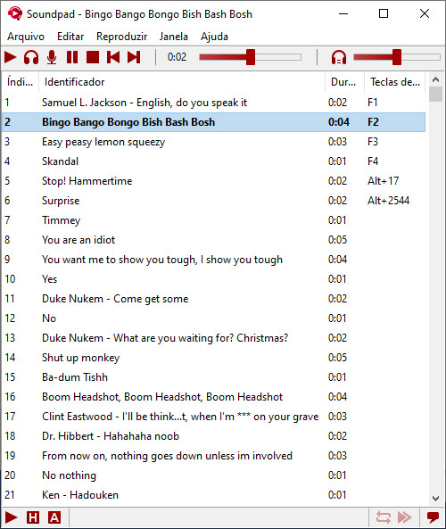 Defina teclas de atalho para cada arquivo de som e reproduza-os rapidamente durante o jogo.