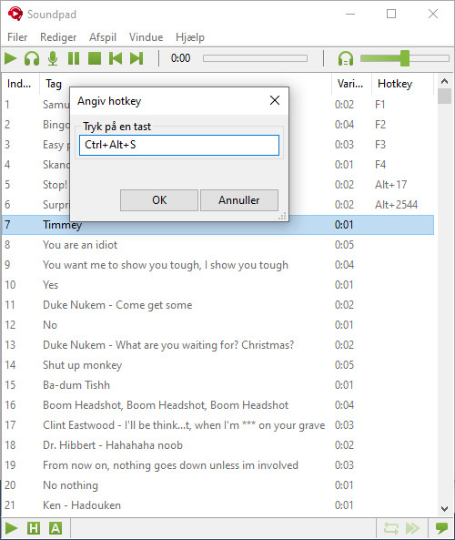 Angiv hotkeys til hver eneste lydfil, og afspil dem hurtigt, mens du er i spillet.