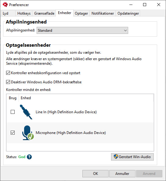 • Yderligere bemærkninger: Mindst en enhed til optagelse af lyd, f.eks. en mikrofon