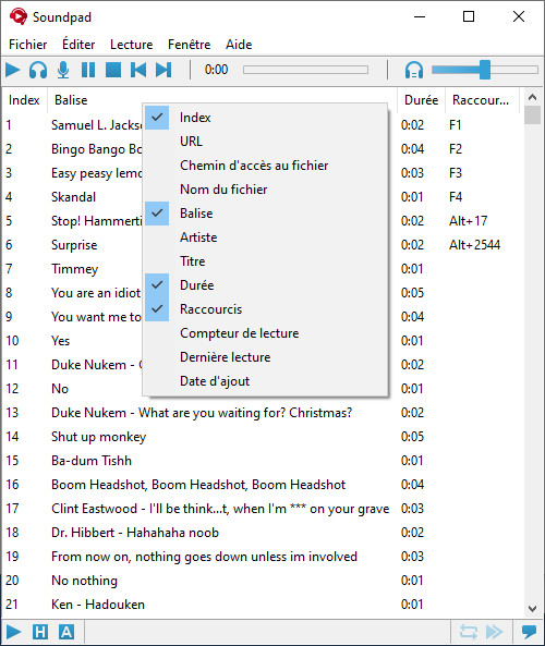Attribuez une touche de raccourcis à chaque son pour pouvoir le lire rapidement pendant une partie.