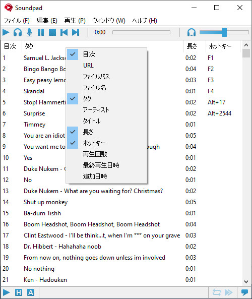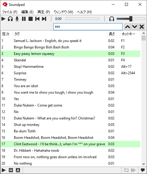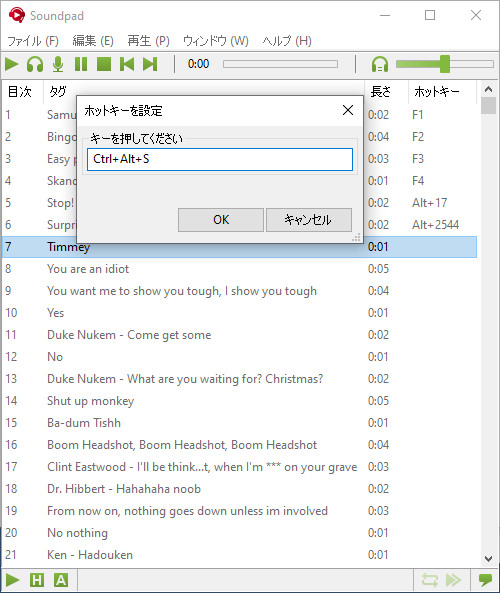 各サウンドファイルごとにホットキーを設定し、ゲーム中にすばやく再生できます。