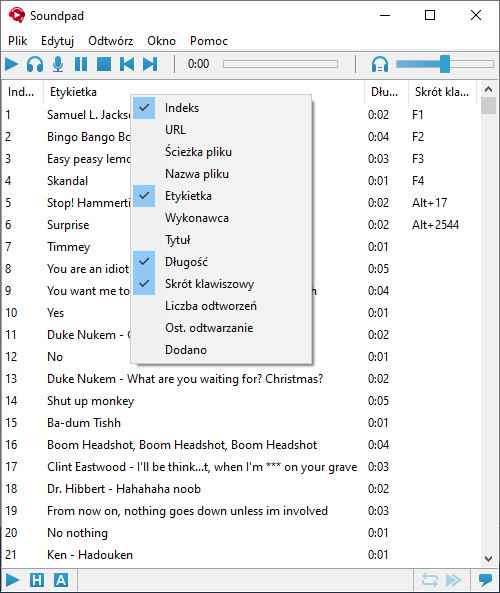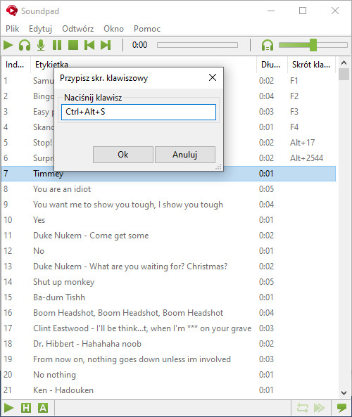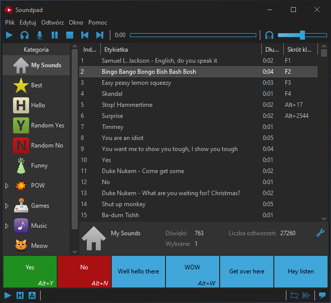 Przypisz skróty klawiszowe dla każdego dźwięku i odtwarzaj je na bieżąco w grze.