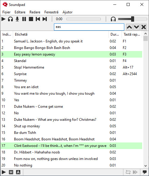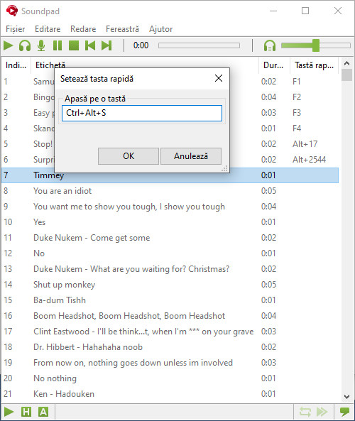 Setează taste rapide pentru fiecare fișier de sunet și redă-le rapid în timpul jocului.