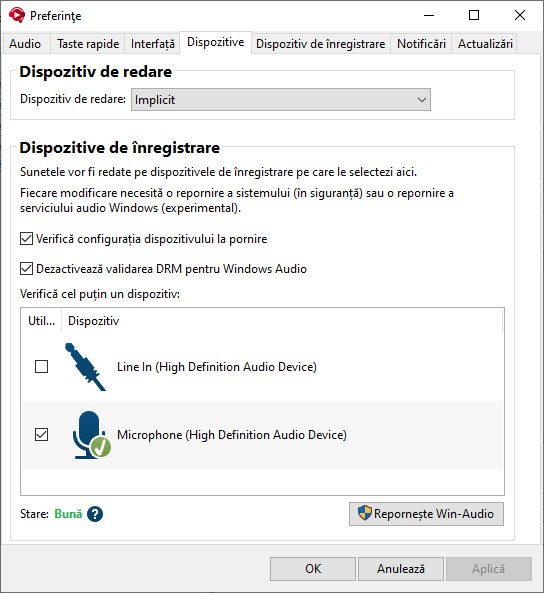• Placă audio: Trebuie să fie instalată o placă de sunet