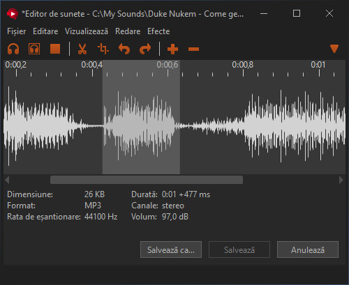 Soundpad are un dispozitiv de înregistrare a sunetului încorporat, care îți permite să înregistrezi ceea ce auzi. Editorul integrat te ajută să tai sunetele rapid.