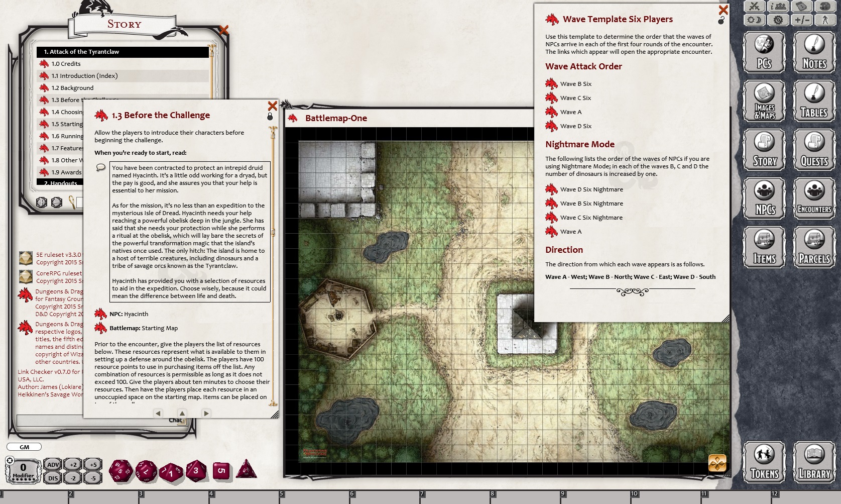 • The adventure is presented in the Library Reference Manual for easy reading and prep and in the Story window as well.