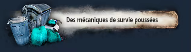 Gardez un œil sur vos besoins et autres variables, qui interagissent de façon réaliste. Rester au chaud, au sec et le ventre plein ne sont pas vos seules préoccupations : une mauvaise hygiène et des vêtements sales vous donnent mauvaise odeur, une température basse augmente les risques de tomber malade et la nourriture que vous ingurgitez doit ressortir tôt ou tard.