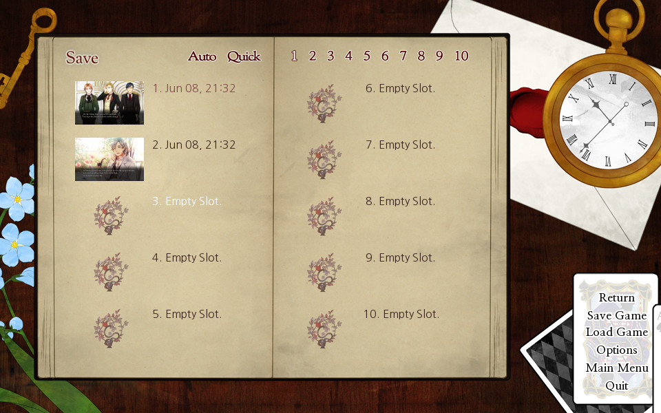 • Individual stories for all romantic interests. Clearing every route will uncover the full truth behind the tragedy that transpired at the Baron’s mansion more than a decade ago.