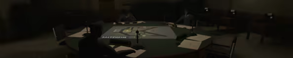 Discuss battle tactics with your team in an underground bunker before a match starts.