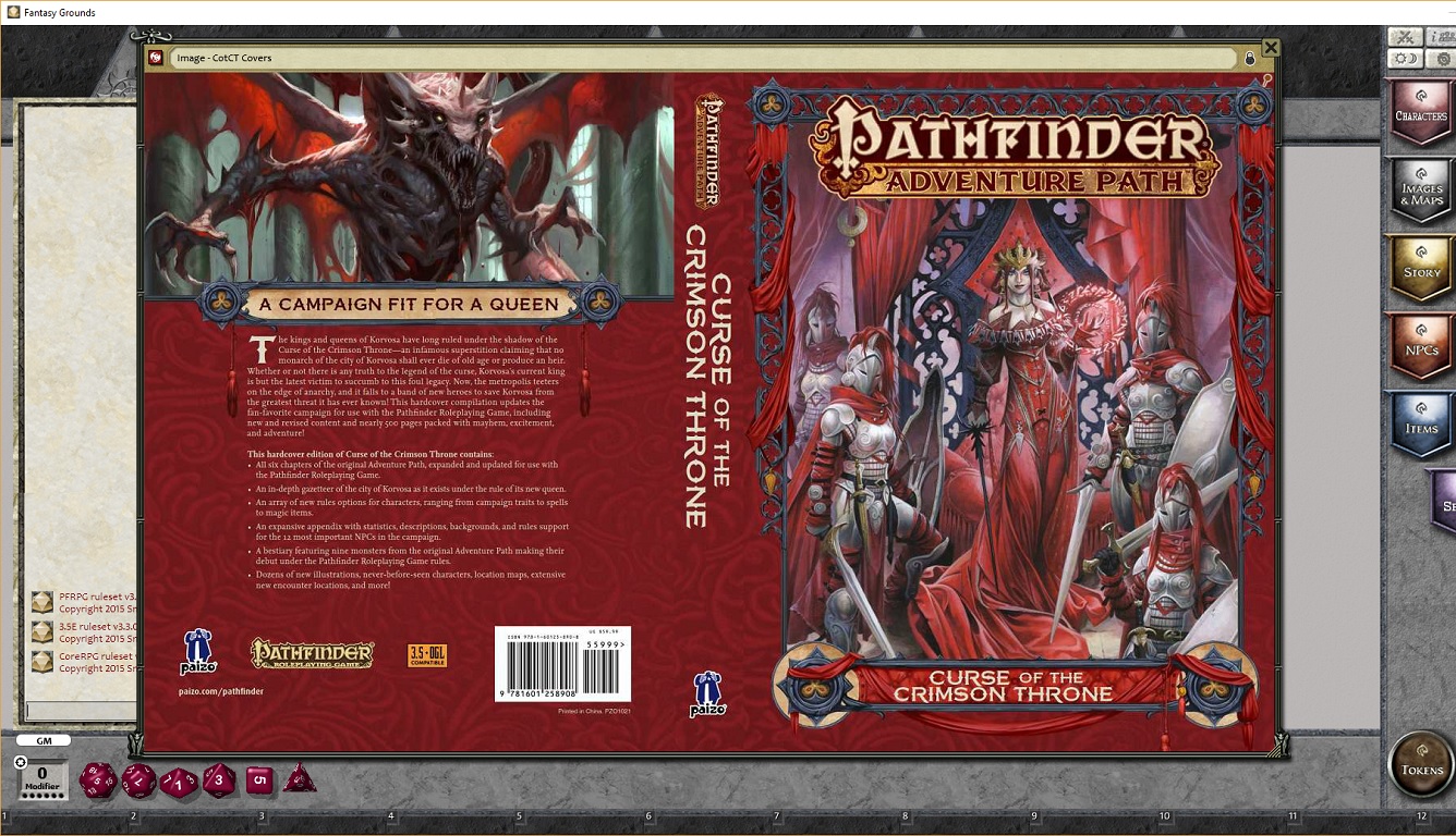Requires: The free Fantasy Grounds virtual tabletop (VTT) software and the included Pathfinder RPG and D&D 3.5/ OGL ruleset.