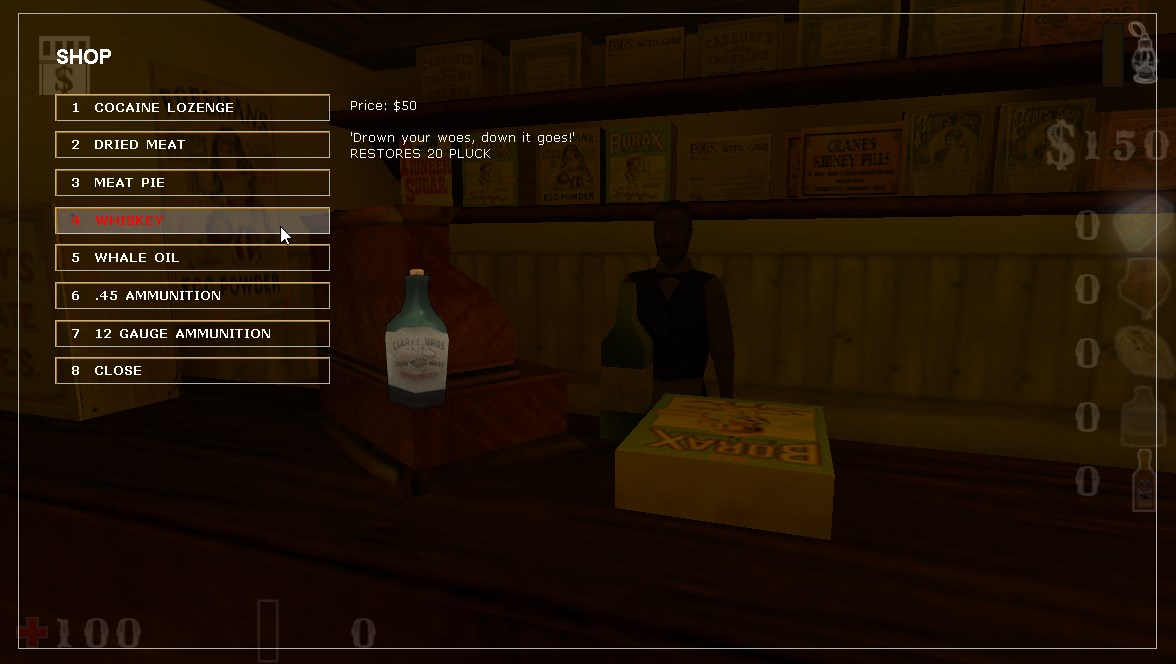 - Monetary system. You can pick up cash and valuable objects in order to purchase items at stores.