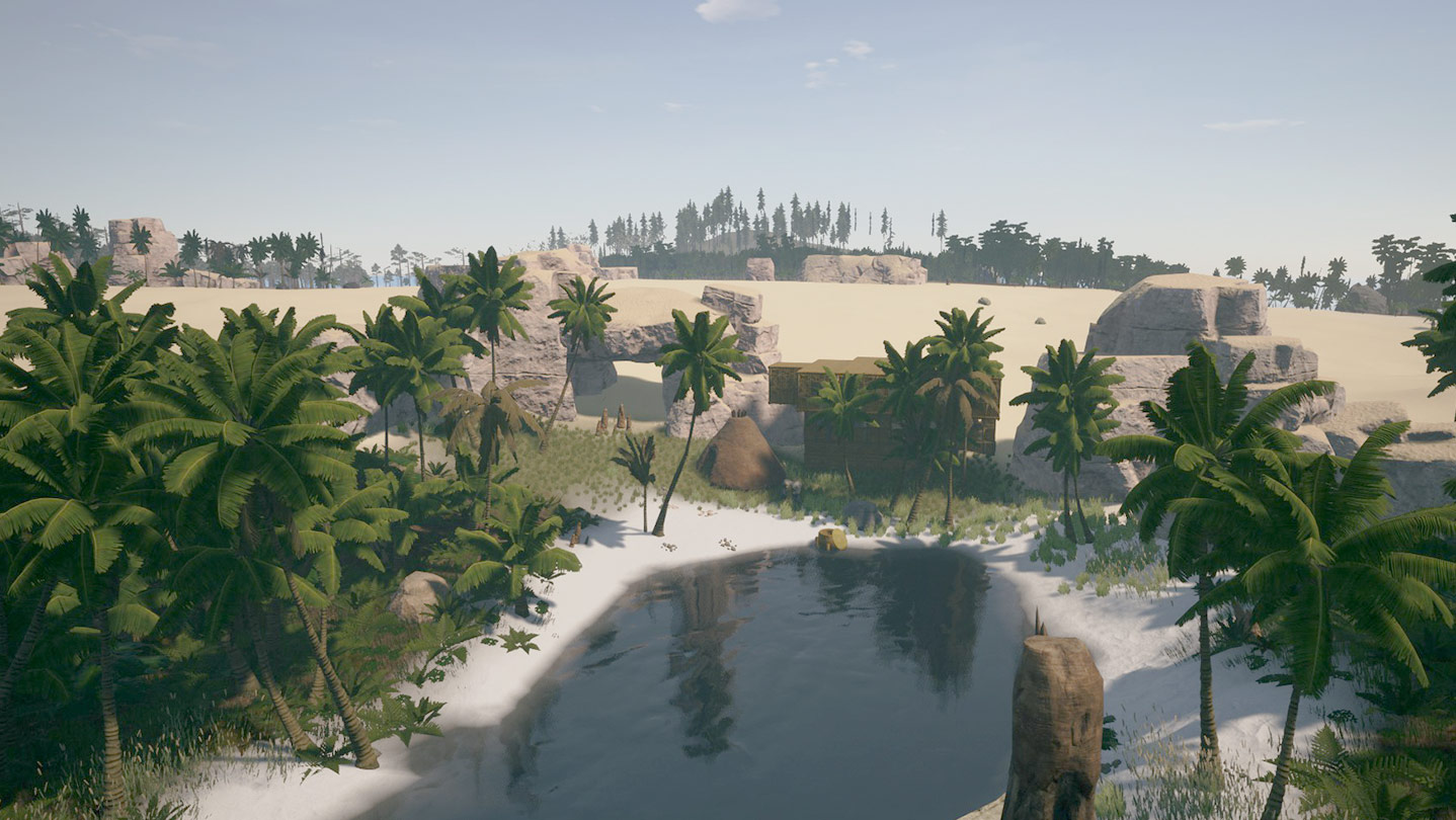 Watch dawn break and night fall over multiple unique biomes in our over 30 square kilometer Open World map. Journey from lush, coastal jungles to sprawling deserts to towering forests. Discover oases and looming stone formations on your quest for a home.