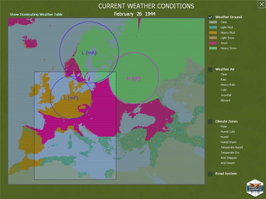- 8 Weather Zones, Weather Fronts and per hex weather conditions at a higher resolution than War in the East