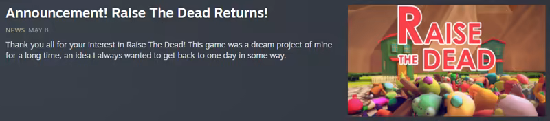 Thank you all for your interest in Raise The Dead! This game was a dream project of mine for a long time, an idea I always wanted to get back to one day in some way.