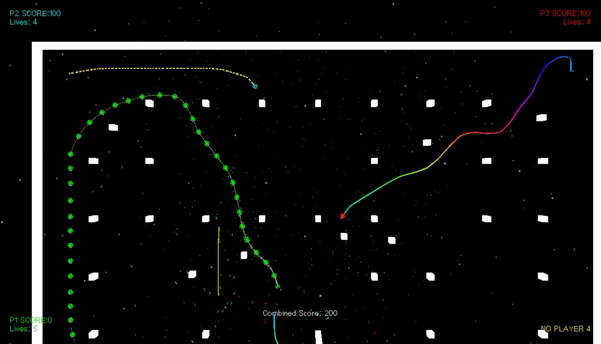 Neon Galaxy is an arcade style multiplayer twin stick shooter. There are modes for co-op and pvp. It supports up to 4 players, with controller and keyboard mouse. You can customize our ship's body, material and trail, and unlock new ships by getting achievements!