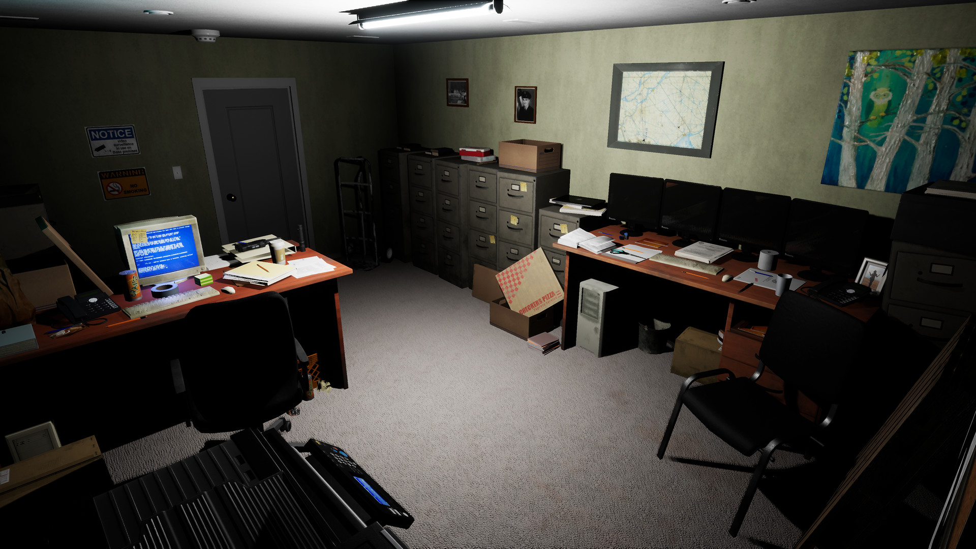 Emily Wants to Play Too is a survival horror game with stealth and strategy elements about a sandwich delivery guy that gets locked inside an evidence processing and storage office building by living dolls. The dolls have "work" to do here and are gathering new friends. They didn’t expect you to show up, so don’t get in their way. Throughout the night you will be looking for an exit out of the office. At some point, Emily will join in on the fun, along with the dolls’ new “friends”. You better play their games or else! Learn what you have to do and be on the lookout for a way to escape.