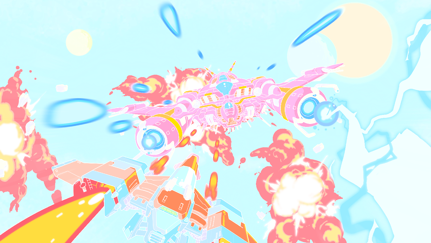 Rival Megagun is a competitive split-screen shoot 'em up where you transform into a giant boss ship and battle your rival head-to-head in local or online PVP.