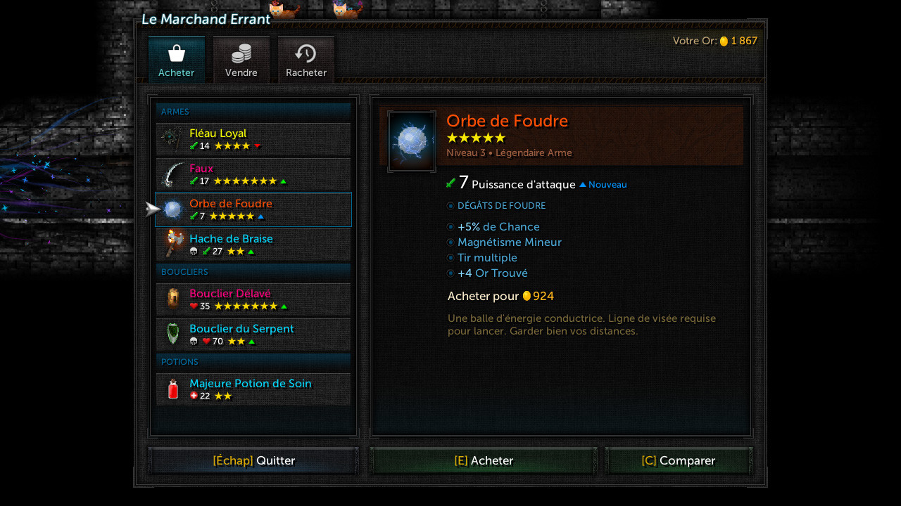 • Montez de niveau. Obtenez de nouvelles armes, boucliers, bénédictions, et potions pour améliorer votre personnage.