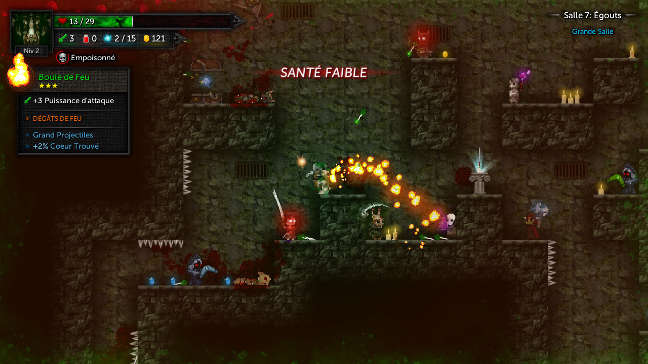 • HASARD DU ROGUELIKE. Salles, ennemis, objets, et les modificateurs sont générés de manière procédurale à chaque partie.