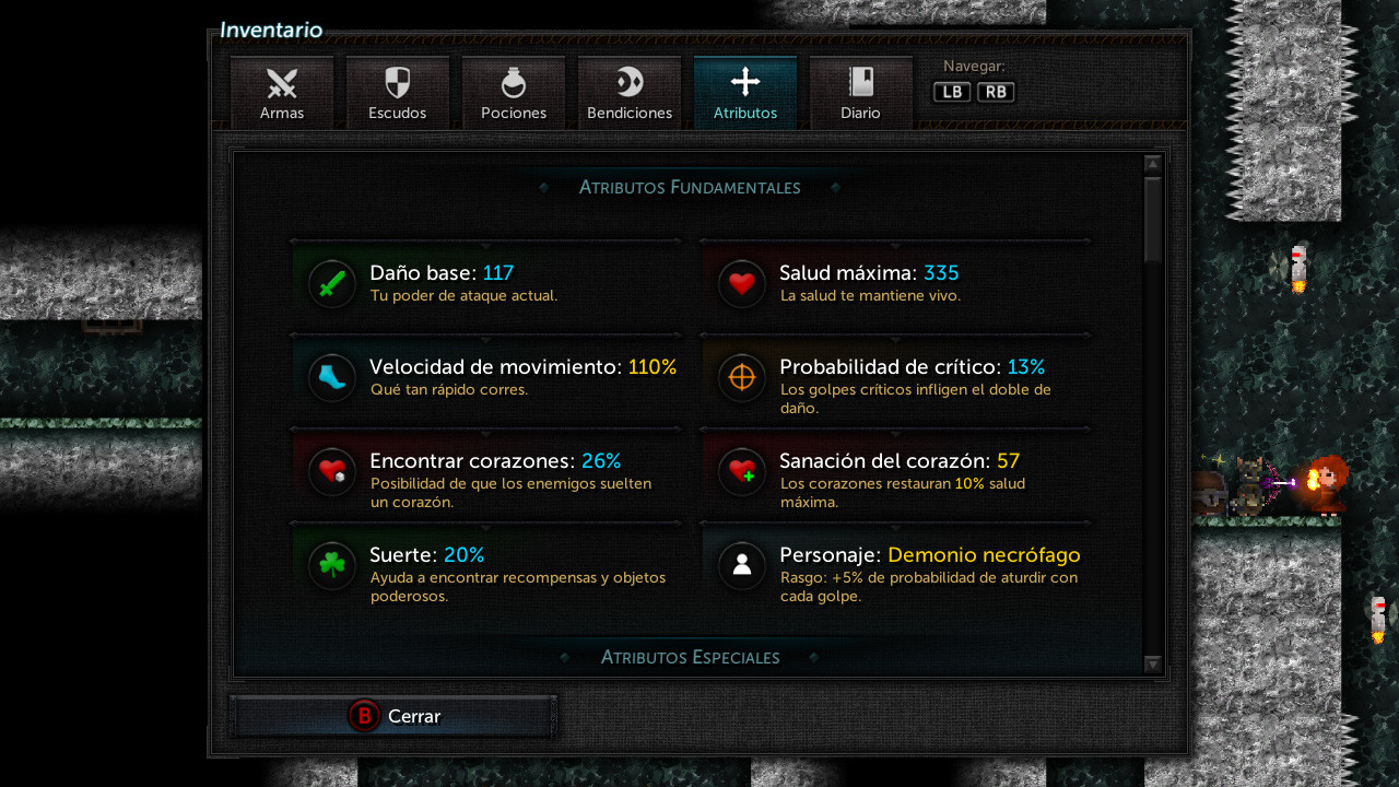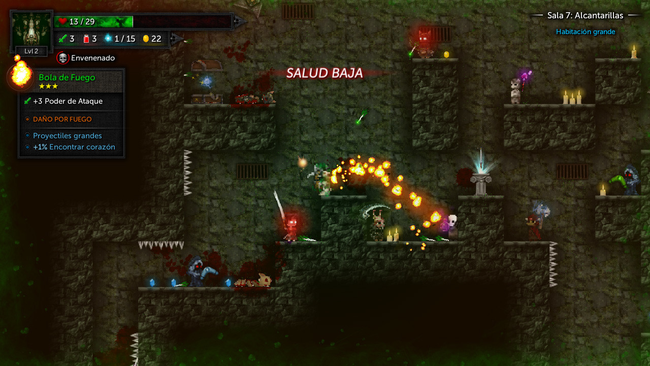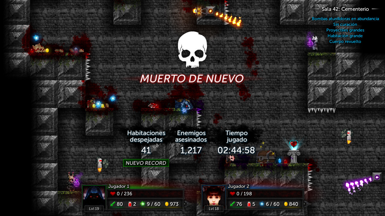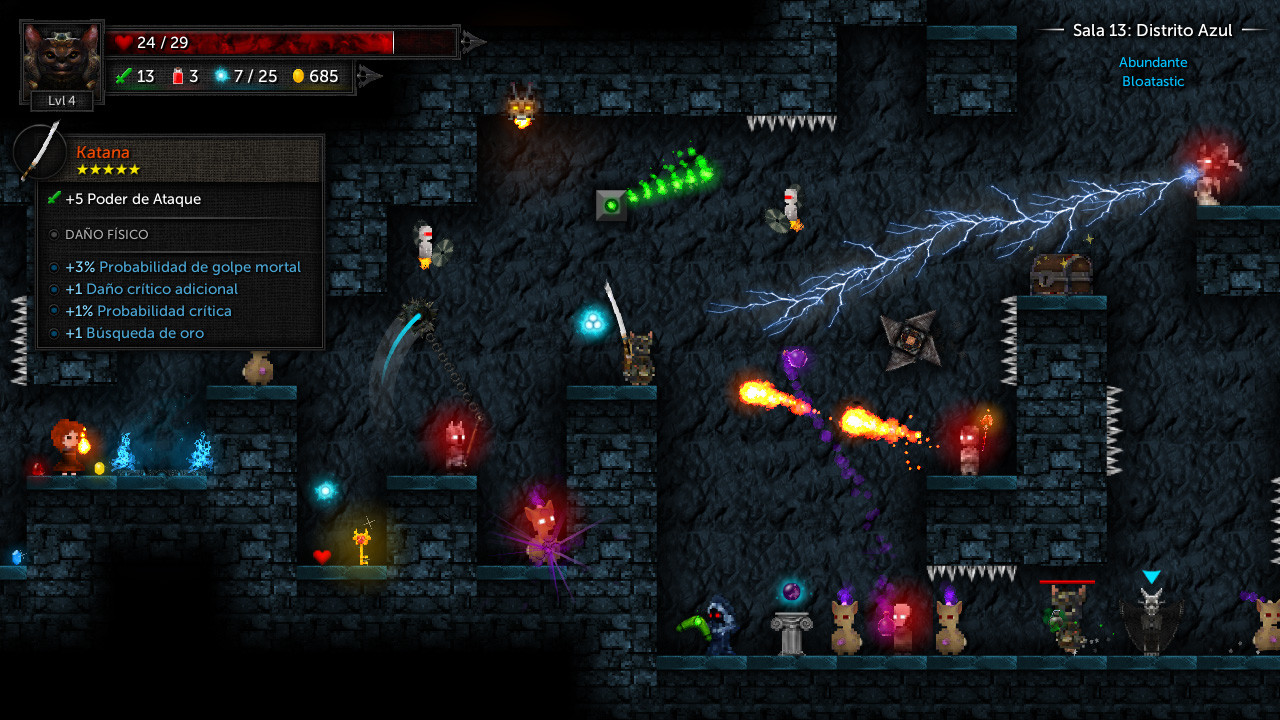 • ROGUELIKE ALEATORIO. Las salas, enemigos, objetos y modificadores son generados de manera procedimental en cada partida.