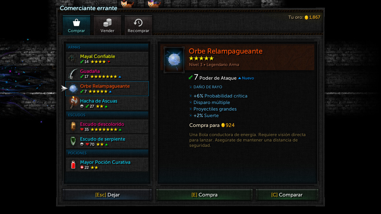• Sube de nivel. Obtén armas, escudos, bendiciones y pociones que alteren las cualidades y habilidades de tu personaje.