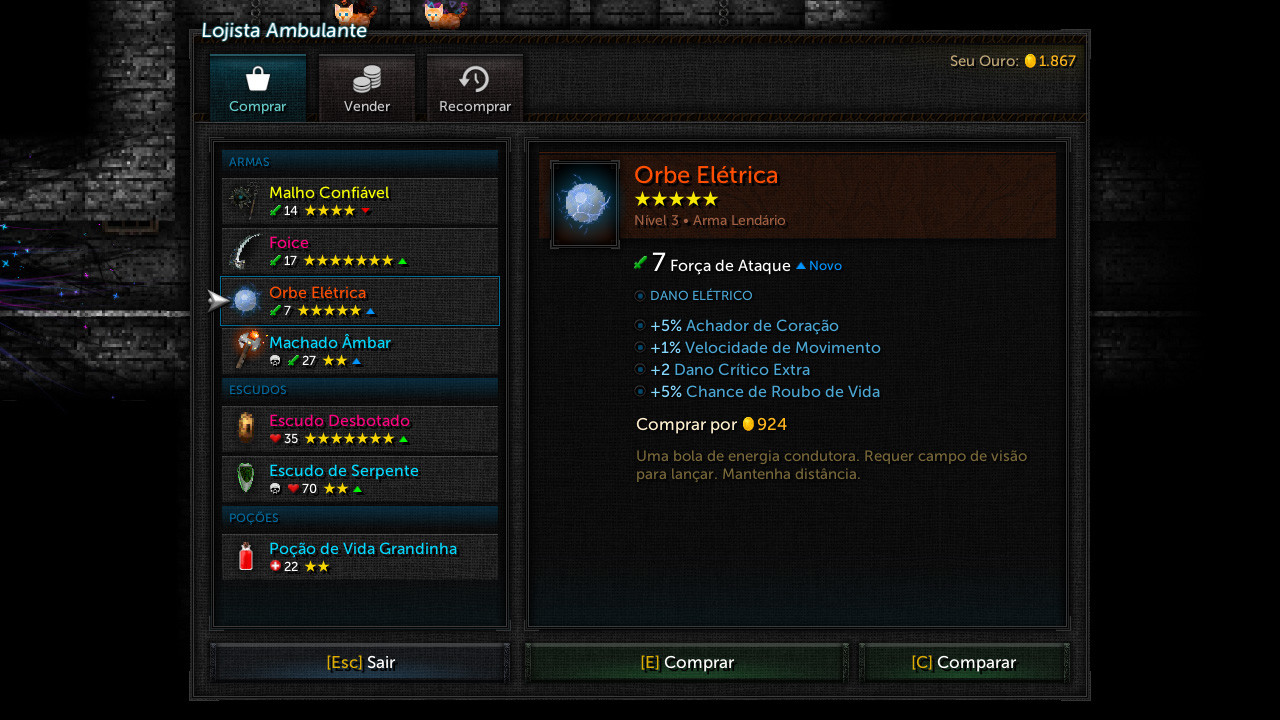 • Suba de nível. Adquira armas, escudos, bênçãos e poções para modificar seu personagem.