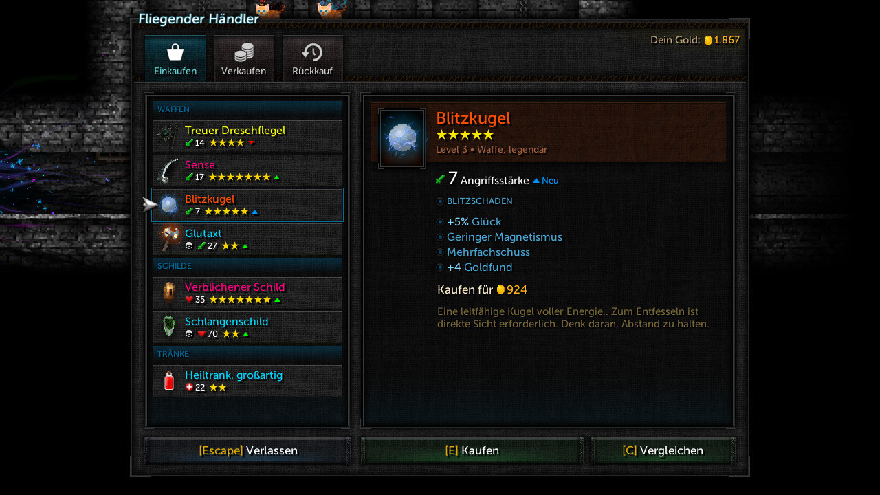 • Level up. Erlange Waffen, Schilde, Segnungen und Tränke, um deinen Charakter zu verändern.