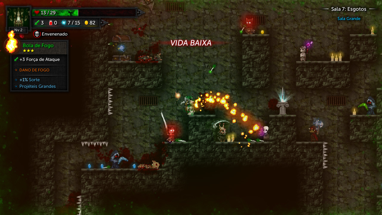 • LUTE. Cada sala contém mais inimigos conforme você avança.