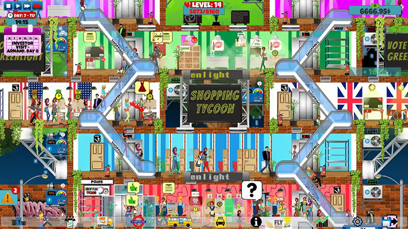 Unlock the best brands of clothing, jewelry, technology and much more. Meet the needs of your customers with toilets, restaurants and other services. Manage and expand the transport (bus, metro and taxis) so that more people come to buy your products. Equip your building with fire prevention systems and avoid little disasters. Manage the temperature, lighting, decoration and security systems of your building. Hire and manage the best staff and make your customers happy! Get celebs visiting your mall. Upgrade it to satisfy trademark investors and building inspectors.