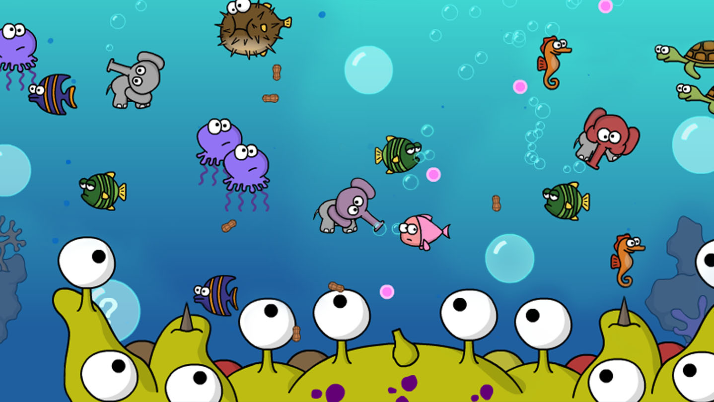 Features crisp, cartoony graphics and original music. A wide variety of enemies ensure infinite replayability. Dodge smaller marine creatures then battle colossal sea monsters by shooting peanuts from your trunk! Recommended for all ages.