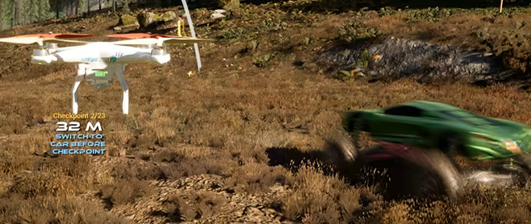 Also, your car is equipped with a few ADrones, for evading harsh situations or to circumvent above other cars, when they obstruct your way. Since you need to continue to compete, and there is no time to lose, and you can simply get into drone mode (LB button, if you still have it) and continue toward the next checkpoint and respawn the car bellow safe position (LB again). However, both the number of ADrivers out of the car and ADrones are limited, also time outside is ticking, so you need to utilize skills, find, loot and get back close to the car to be able to enter before time expires, or your car will be respawned to the previous checkpoint and you will stay out of the loot.