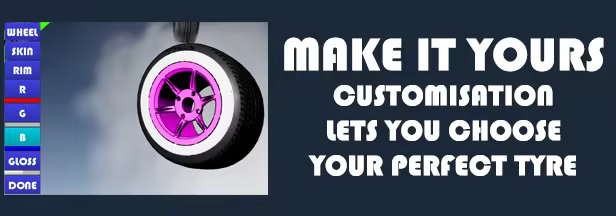 Customise your Tyre and lead it to victory in a series of customisable minigames.