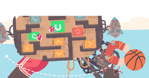 Ready to play some ball? Grab a team, suit up, and climb inside your human! Prep its thrusters, lower the all-terrain wheels, and spin up that flailing magnet-arm. It's time to play Regular Human Basketball!