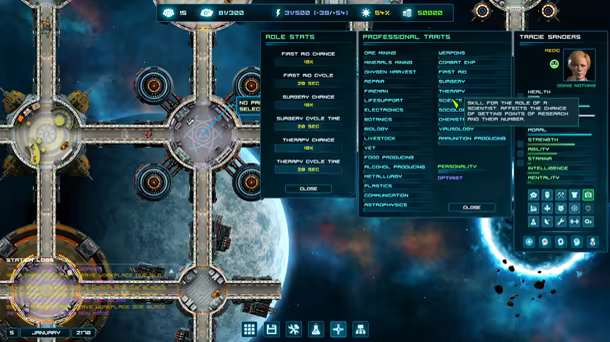 Each crew member is endowed with a unique set of skills and abilities, as well as personality traits and specific needs. Find the most efficient way to assign them to various tasks such as construction, extraction of resources, research and trade. Watch your crew thrive but always remember to keep an eye on their morale and health conditions -- once someone dies they're gone forever! Preserve them by building special modules for leisure activities and med bays.