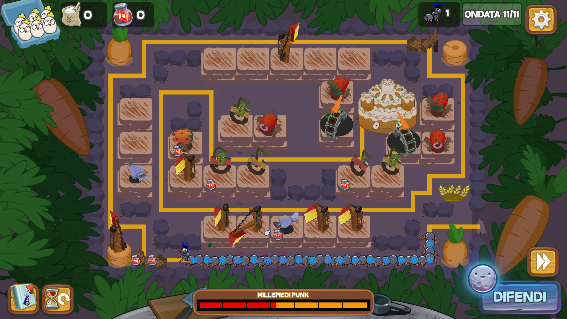 Da un team di ex-sviluppatori di Riot e Blizzard, arriva il gioco tower defense più "delizioso" di sempre! Aiuta l'Imperatore Gusciolo e i suoi fedeli Ovetti a proteggere le torte dagli assalti di insetti pestiferi. Il gioco inizia quando posizioni una gustosa torta castello sulla mappa. Scegli accuratamente il punto perché sono in arrivo eserciti di formiche intenzionate a rubarne una fetta! Una volta fatto questo, devi stabilire la tua strategia. Costruisci un dedalo per battere in astuzia le terribili formiche e proteggere la tua preziosa torta. Usa fionde lancia angurie e pistole alla glassa per sventare assalti di api, lumache e formiche motorizzate!