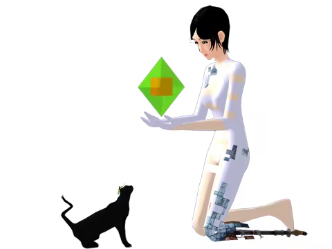 Slowly, the drone began folding its wings, which were also used as solar power generators. Instantly, it transformed into a girl and a cat, unconsciously fell on the ruin.