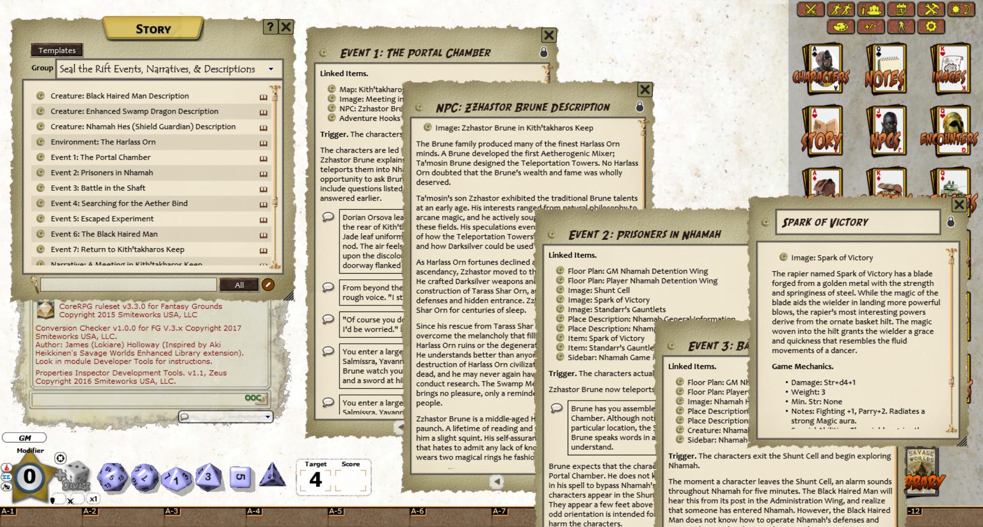 Seal the Rift! is a Savage Worlds adventure for 4-6 Heroic characters. Zzhastor Brune teleports the characters into Nhamah, where they will navigate the automated defenses before confronting a powerful Veilwalker construct determined to prevent the Aether Bind from being activated.