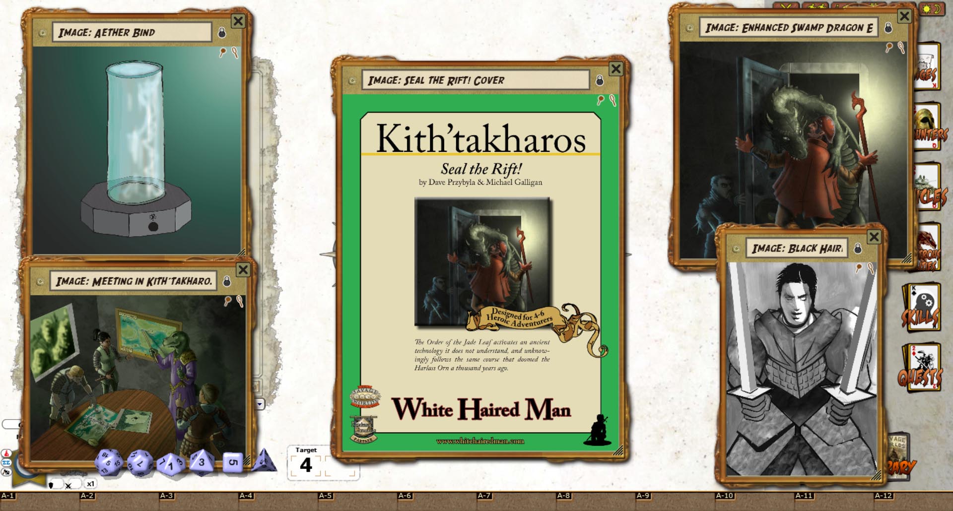 Seal the Rift! is a Savage Worlds adventure for 4-6 Heroic characters. Zzhastor Brune teleports the characters into Nhamah, where they will navigate the automated defenses before confronting a powerful Veilwalker construct determined to prevent the Aether Bind from being activated.