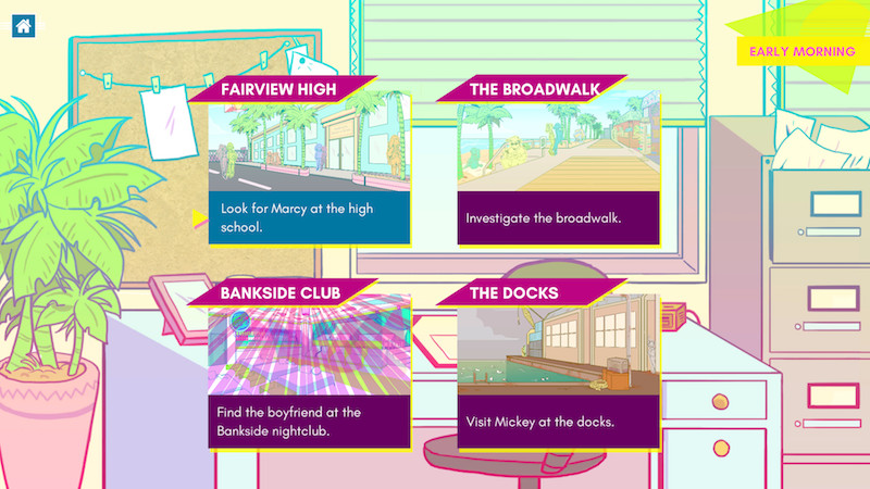 Miami, 1986. An overtasked police force can barely keep up with the murders, let alone the enormous backlog of missing persons cases. Enter Chelo Martínez, a brand new private eye determined to find the people who slip through the cracks. Help Chelo navigate the beaches and back alleys of Miami at the height of the cocaine epidemic, and investigate five original cases, including the disappearance of her own father, ten years ago. You pick where to investigate, how to handle a suspicious witness, and who to call for backup.