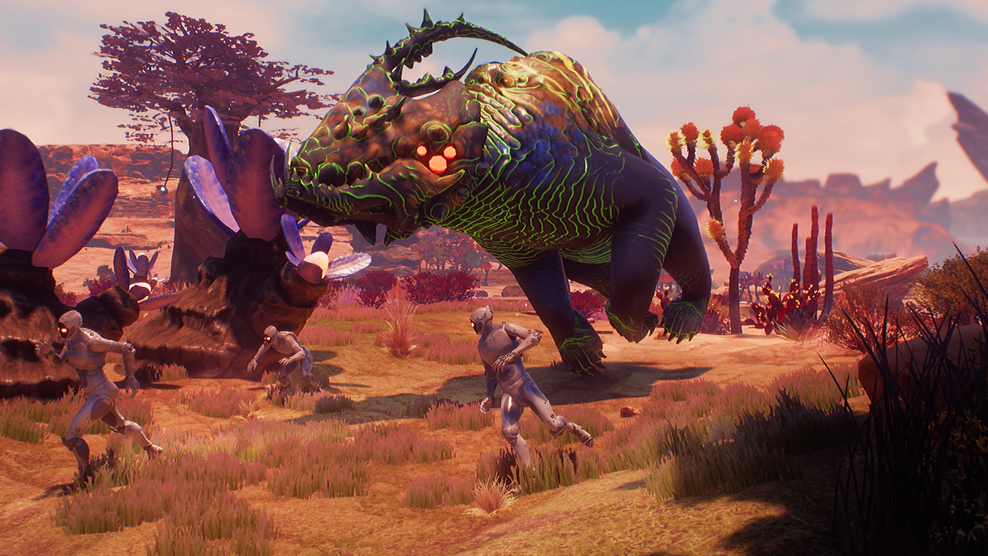As you evolve your colony from survival to dominate the local ecosystem, you will have access to higher tiers of items. A full RPG stat system gives you limitless possibilities in how you outfit yourself and your AI robots. Build railguns, powered armor, jetpacks, mining lasers, gliders, jump boots, shield generators, massive battery packs, and more as you augment your robotic frame to be the ultimate power on the planet. Create, train, and outfit expert weapon and armorsmith robots that can craft super-powered weaponry and gear for your forces. Then take the fight to the deadly creatures populating the most hostile areas of the world, and take down prehistoric monsters undreamed of on Earth, as well as rival Outposts and pirate hideouts swarming with unfriendly foes.